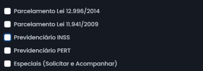 Nossa plataforma realiza a busca automática de dois tipos principais de parcelamentos da Receita Federal: