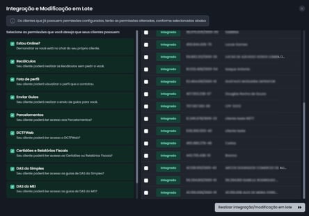 Selecione os clientes que deseja integrar
