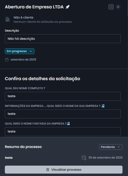 Todo formulário que é preenchido pelo seu cliente cairá na aba Ordem de Serviço no TaskHub, você terá acesso acesso à todas as informações que seu cliente preencheu e você também poderá gerar processos dentro do formulário.