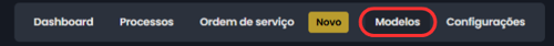 Para efetuar a gestão e criação dos seus modelos primeiramente selecione a opção modelos no menu da parte superior da tela:
