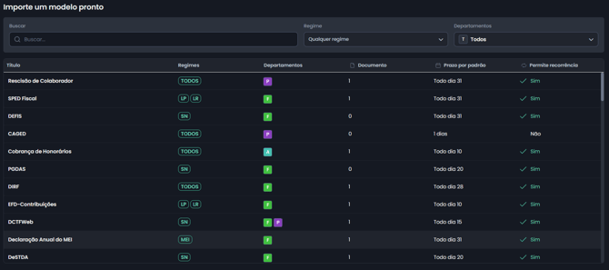 Nós disponibilizamos modelos prontos, pensados especialmente para a rotina do contador, que podem ser importados e utilizados na criação de processos.
