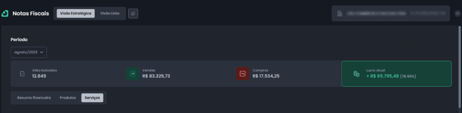 Acompanhe tanto os serviços prestados quanto os tomados, com análise consolidada.